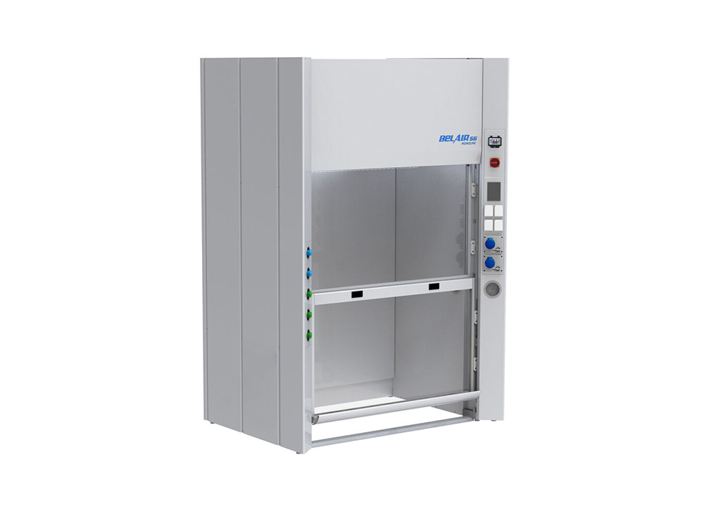 Belair56 är certifierad enligt EN 14175 och ASHRAE-110 och kännetecknas av kraftiga sidopelare som ger alla verktyg optimalt utrymme, vilket lämnar området under arbetsytan fritt från hinder för en säkrare användning av dragskåpet.