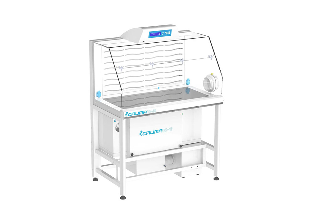 För att säkerställa att operatören är skyddad vid vägning av farliga ämnen har Cruma designat P1 och P2 som levereras med dubbla HEPA-filter (ett huvudfilter och ett säkerhetsfilter) för optimalt användarskydd samt skydd av omgivande och miljö. Våra pulverskåp ansluts inte till ventilation utan är fristående. Säkerhetsfiltret kan som option bytas ut mot ett aktivt kolfilter i fall applikationer kräver det.