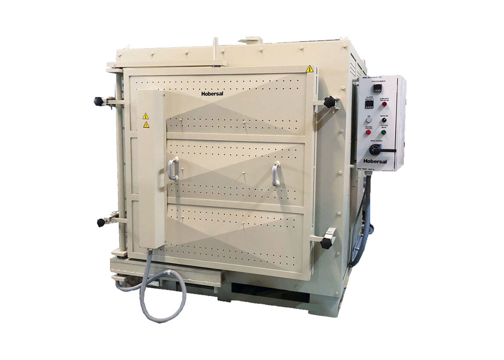 Industriugnar med kraftfull fläktcirkulation för temperaturer upp till 300°C utan maxlastgräns. Modeller upp till 15 kubikmeter.