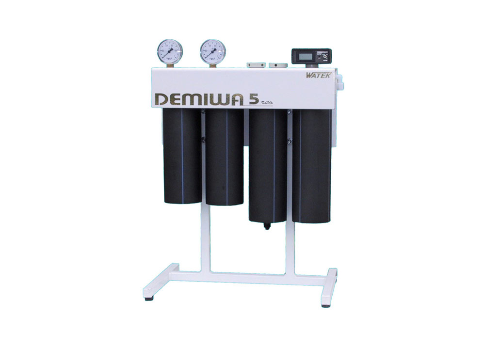 De enkla DEMIWA-enheterna kan användas i laboratorier som tidigare använt vanligt destillerat vatten. Vattenreningen sker med hjälp av filter: Först ett förfilter för att ta mekaniska föroreningar i vattnet, därefter ett kolfilter och sedan ett filter för omvänd osmos som tar bort 96-98 % av vattnets konduktivitet. Beroende på kvaliteten på matarvattnet ligger producerat vatten här på ca. 5-10 µS/cm, Kan kopplas till tank.
